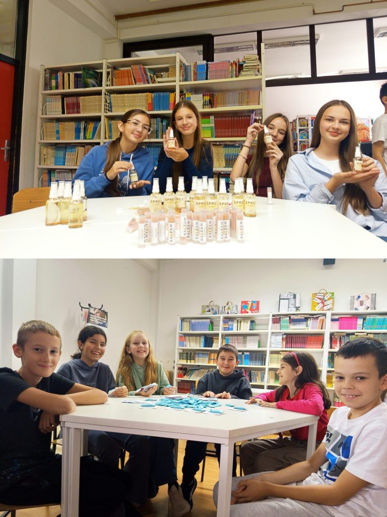 Mi smo ove godine svoju Zadrugu predstavili sokom od bazge iz školskoga dvorišta (Lucija Arbanas), ukrasnim teglicama s posađenom aloa verom i sansvetijom (Jasna Kirin), čokoladama, muffinima i olovkama s porukom (Martina Martinković) i prirodnom kozmetikom (balzamima i sprejevima s eteričnim uljima – Petra Piljić).